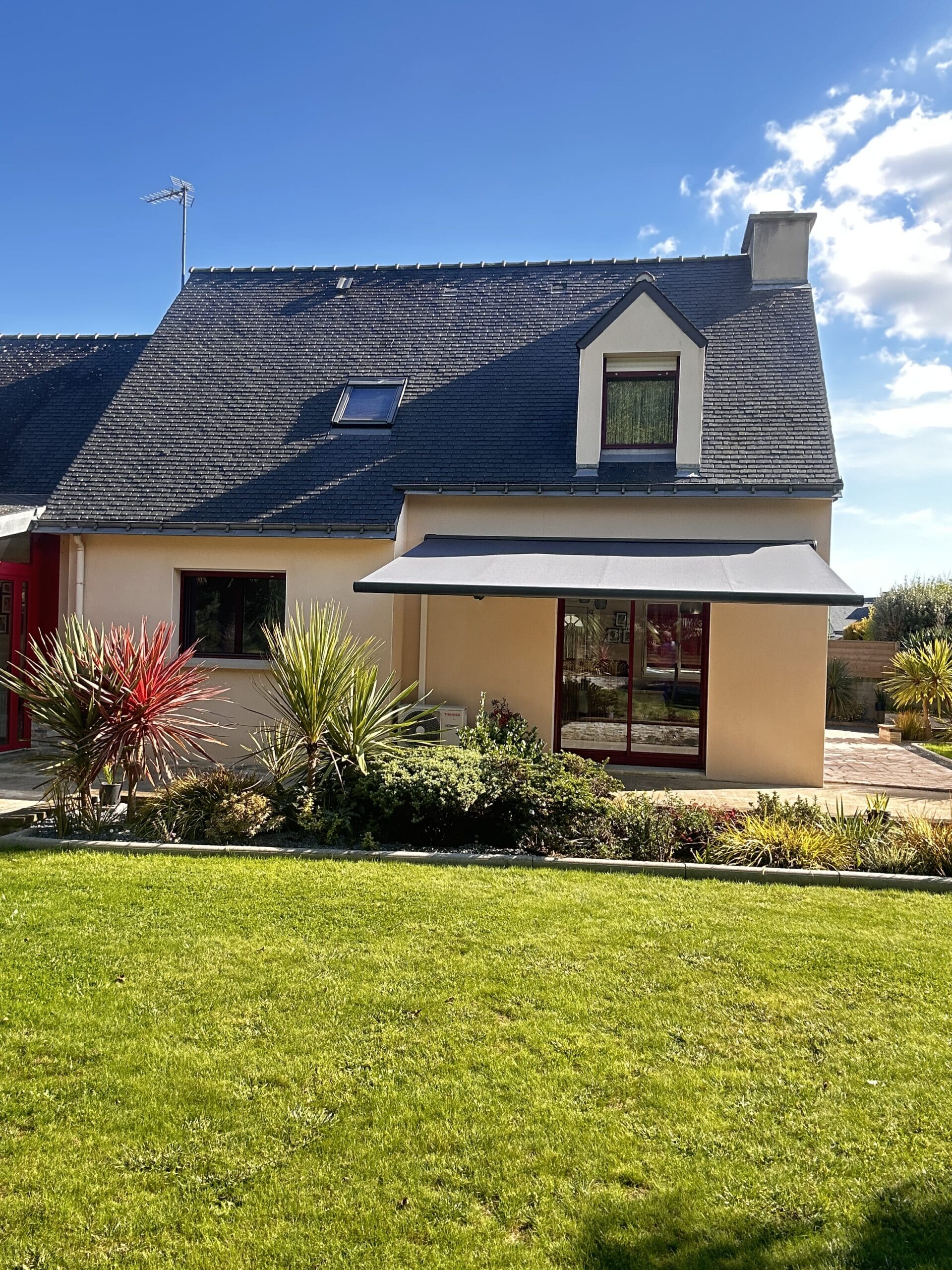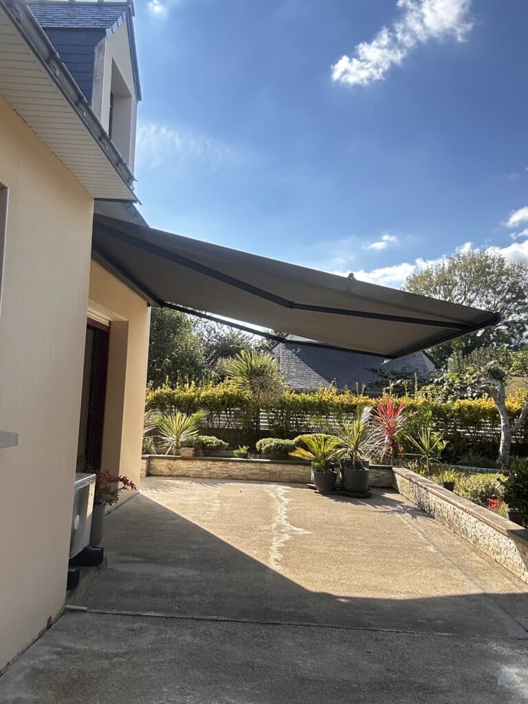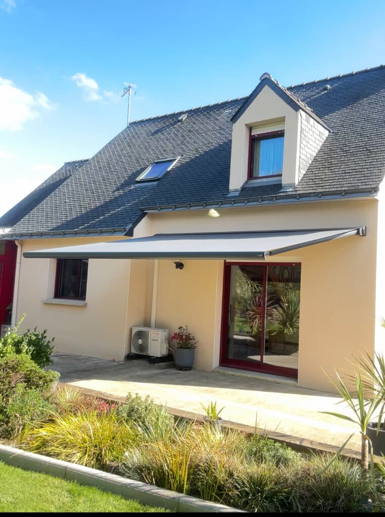 Installé sur la terrasse d’une charmante maison bretonne, ce store apporte fraîcheur et élégance, permettant de profiter pleinement de la belle saison.
